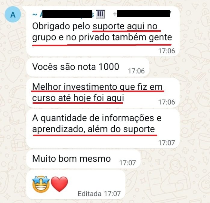 Claro que sim! No Todo Mundo Aprende Música você terá 1 ano de acesso a comunidade do whatsapp e 1 ano da nossa mentoria com encontros ao vivo.
